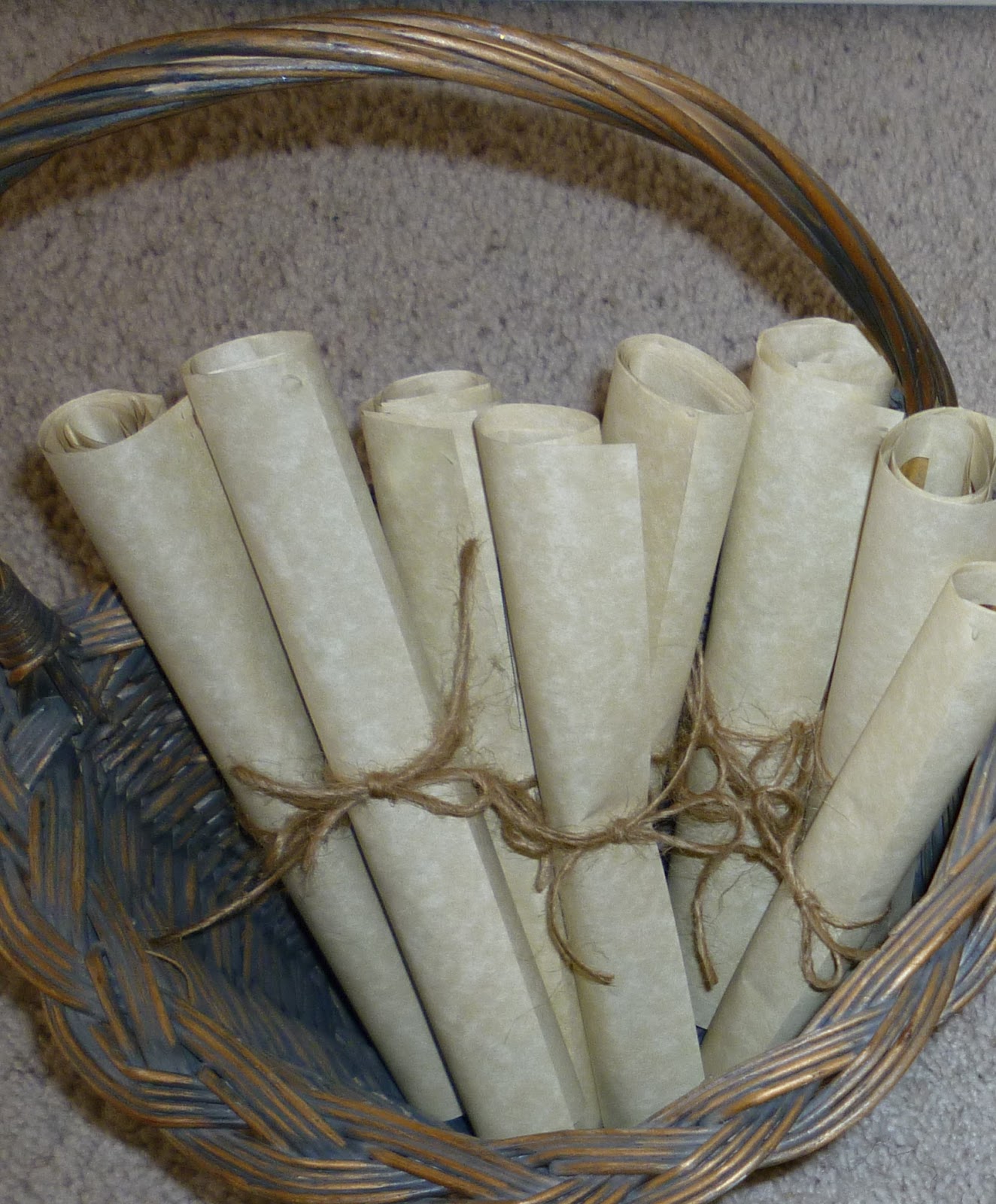 In a mockery of the Ragman's Rolls . . . a game with the same name was played. It involved a pile of rolled-up pieces of paper tied with string. Each scroll, purportedly written by King Ragman, was inscribed with the description of a character written in verse. Each person would choose a roll and read what was written inside. The contents were supposed to reveal the reader's "true nature," aloud to the great merriment of the group. Ah . . . simpler times.